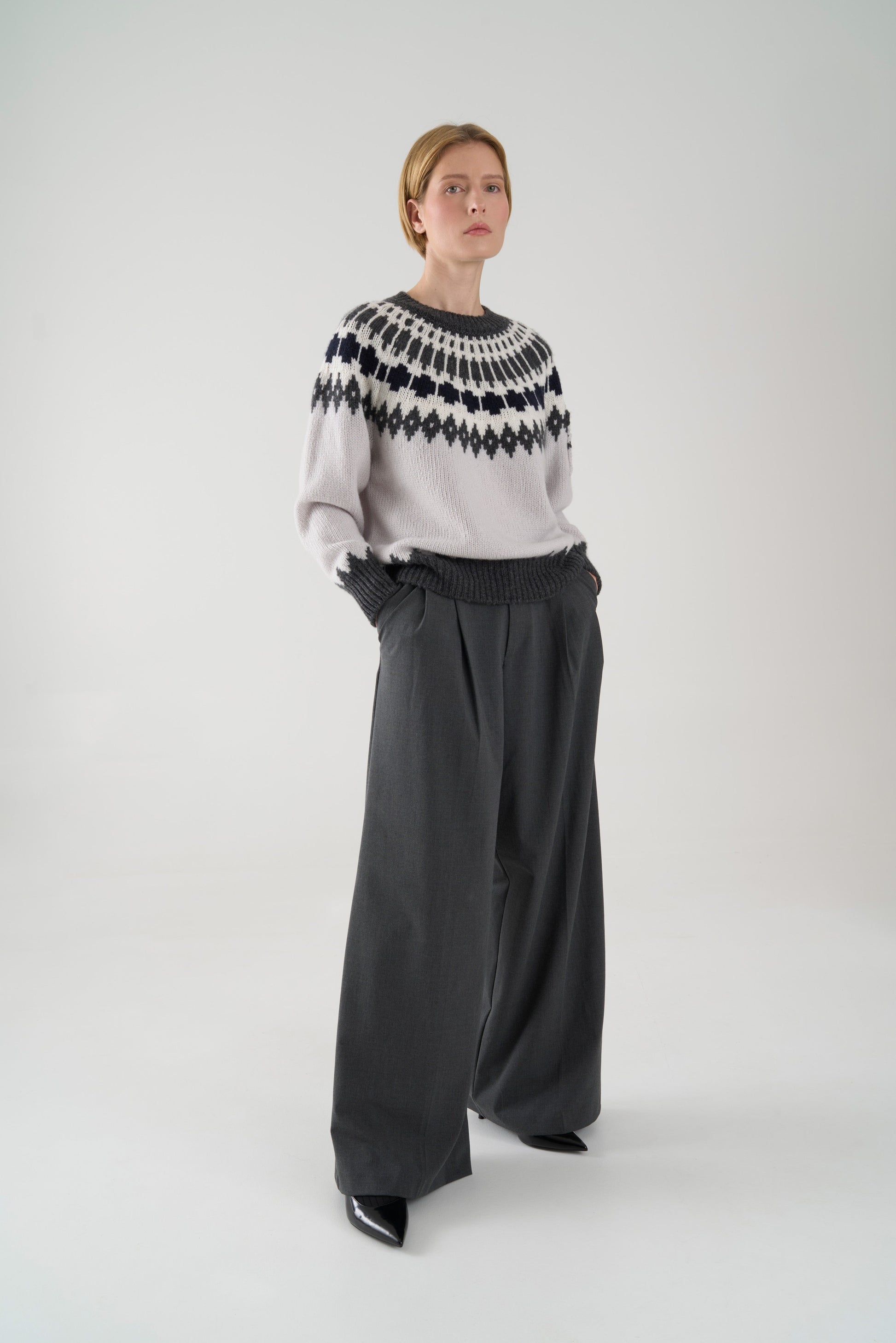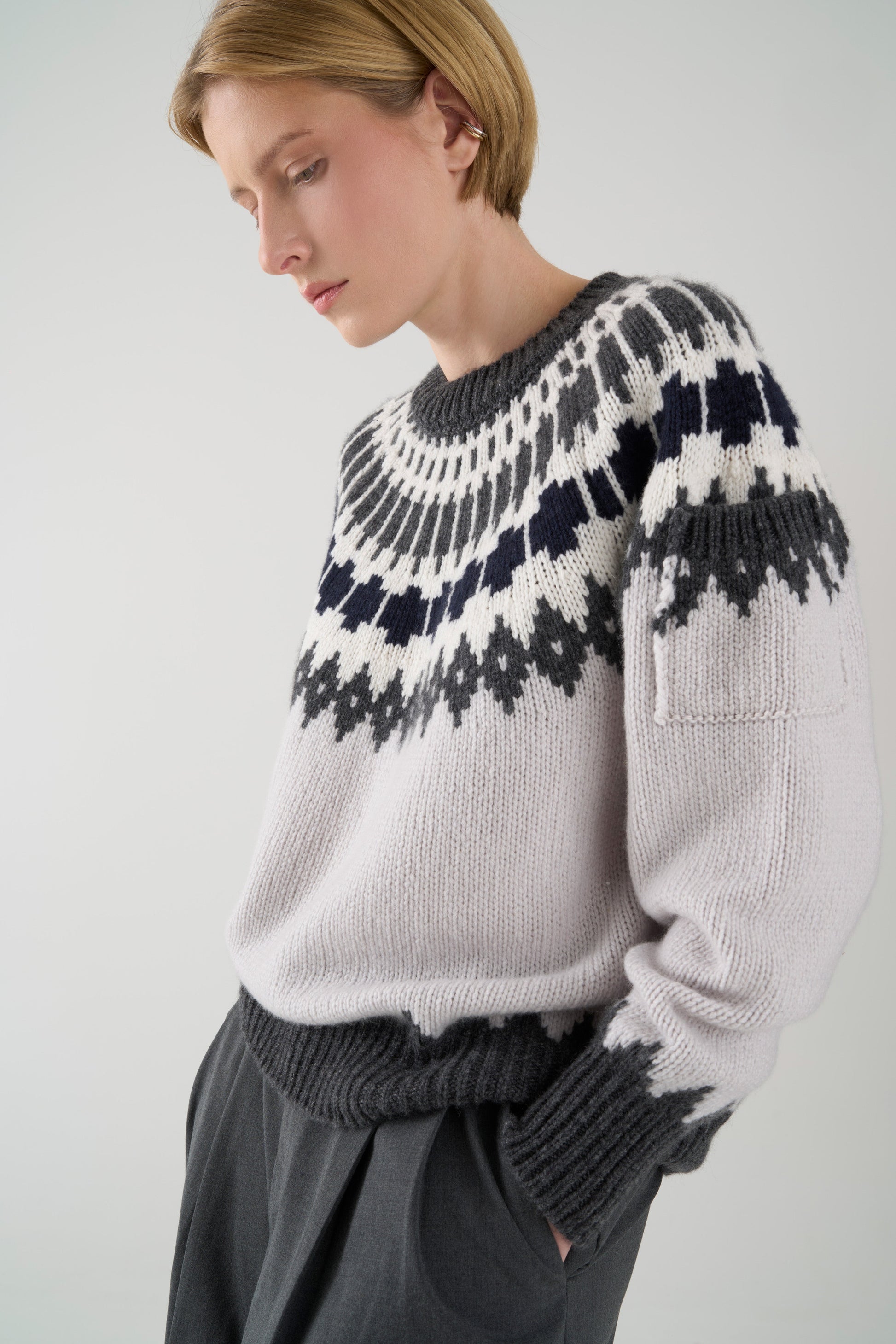 Questo girocollo in 100% cashmere è il simbolo dell'eleganza e della raffinatezza. La tasca sulla manica aggiunge un tocco di originalità. La lavorazione in jaquard conferisce unicità e stile a questo capo. Perfetto per chi ama distinguersi con classe.