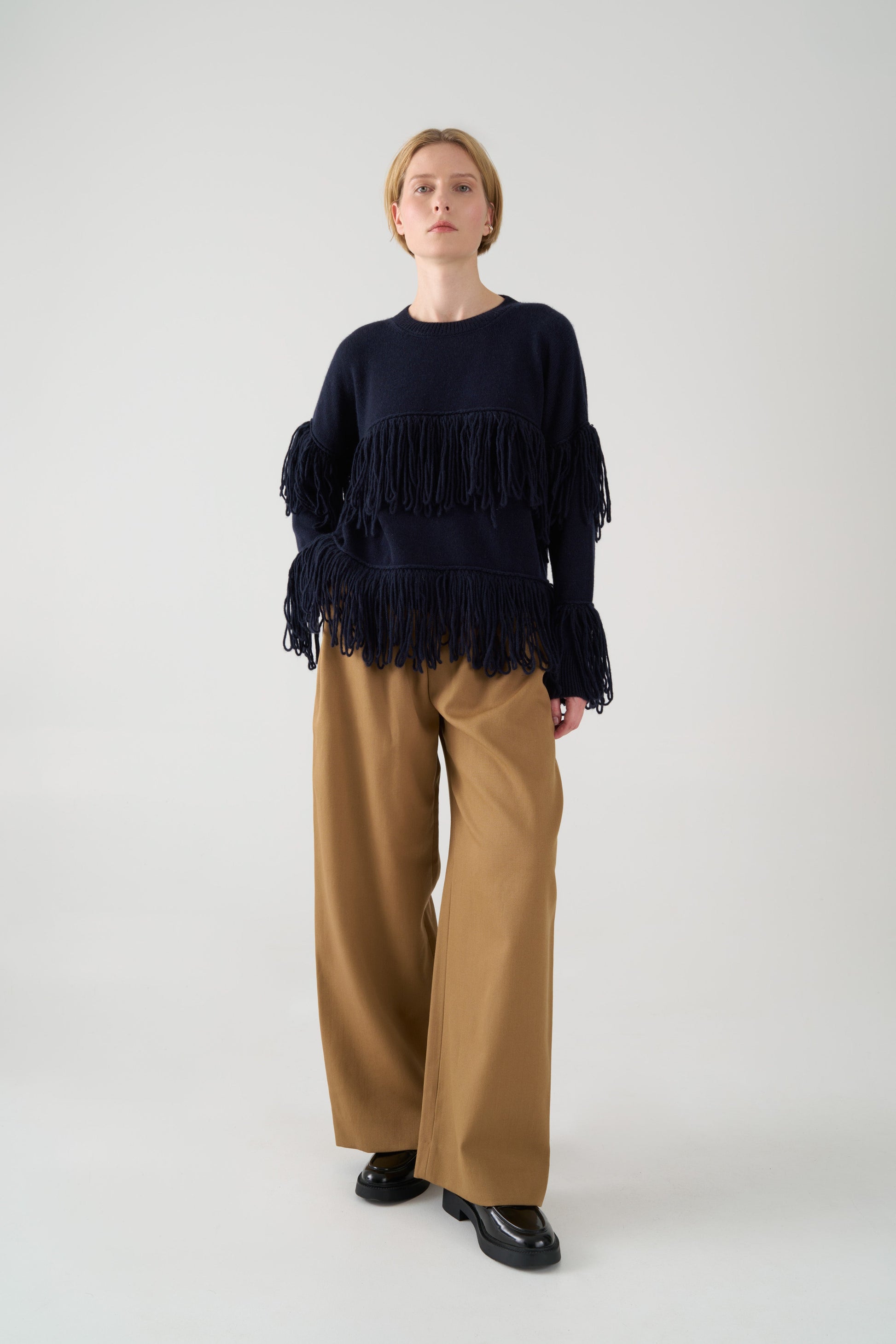 Esclusivo girocollo in 100% cashmere con frange, per un tocco di eleganza e morbidezza. Ideale per completare un look ricercato e sofisticato, questo prodotto premium è realizzato con materiali di alta qualità per offrire un comfort unico e un design esclusivo.