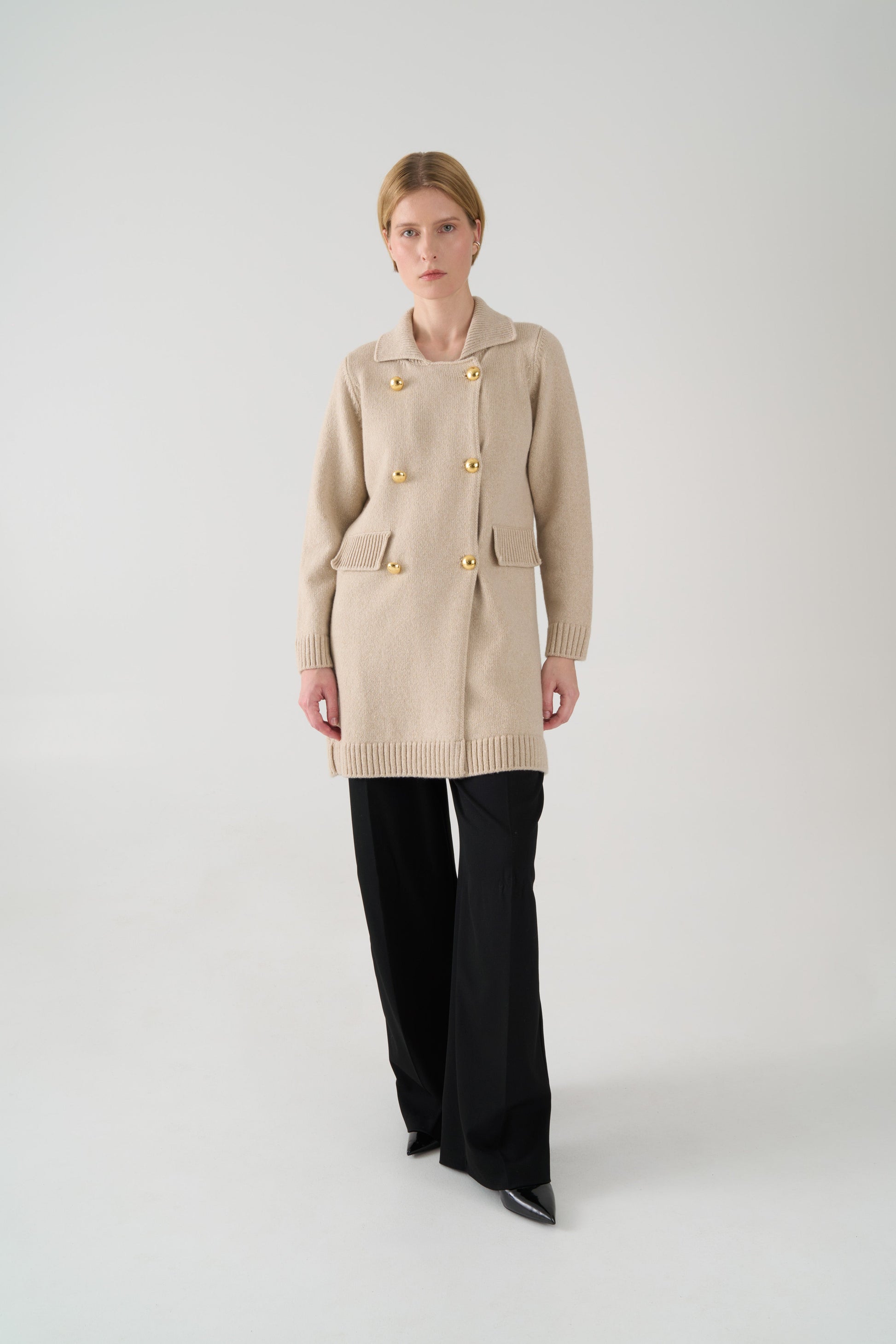 Indossa il nostro cappotto doppio petto in 100% cachemire per una sensazione di lusso e calore. Realizzato con il filato più pregiato, ti farà sentire esclusivo e conferirà un'eleganza senza tempo al tuo outfit. Perfetto per un look sofisticato e di classe.